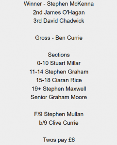 Well done to Stephen McKenna winner of the Hoggs Bar 🐗sponsored competition on Saturday 17th May with a great score of 42 points. 👏