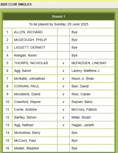 The interclub competitions are now all completed and are posted on the master scoreboard with the key dates of when each round and matches should be played by. 📅✏️