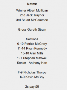 Well done to the overall winner of the Irwin’s Aggregate sponsored competition on Saturday 7th June Albert Mulligan with 41 points.