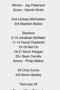Well done to Jay Patterson the overall winner of our first monthly medal of the season with a great score of net 66.